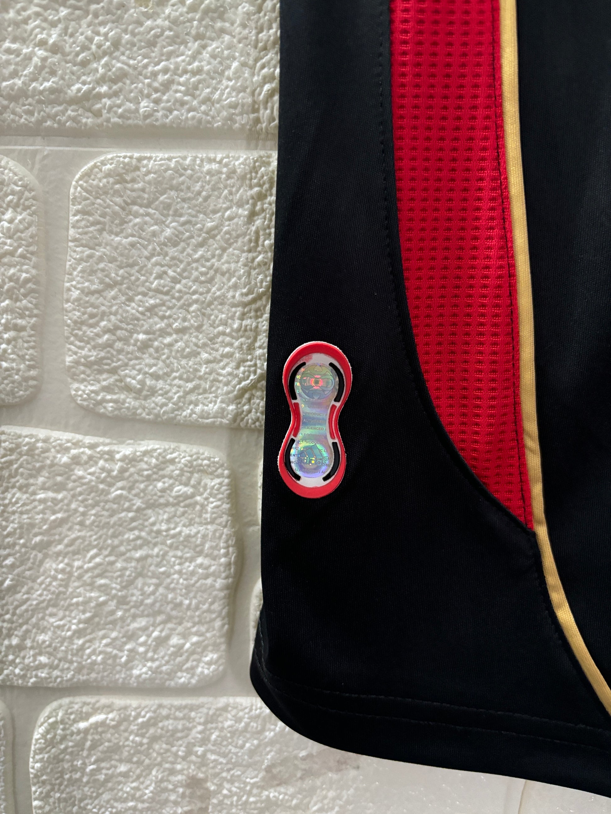 The design features a bold all-black base with red and white details, making it one of Milan’s sharpest alternate kits of the 2000s. Complete with the bwin sponsor, adidas three-stripes, and the club crest of the era, this vintage Milan kit is forever tied to Kaká’s brilliance and the club’s 7th European Cup. Perfect for collectors, supporters, and fans of classic soccer jerseys.