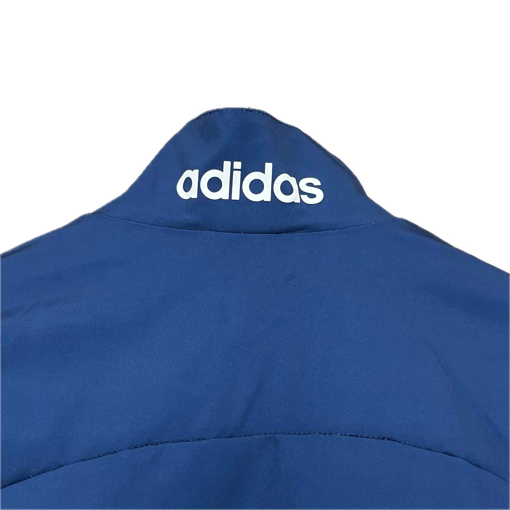 The windbreaker features a deep navy base accented with light blue and white retro-style striping, capturing the classic look of Argentina’s historic kits. Crafted from lightweight, water-resistant, and windproof fabric, it provides protection from the elements while maintaining breathability. The full-zip closure, adjustable hood, and elastic cuffsensure a secure fit, while zip pockets offer practical storage for essentials.