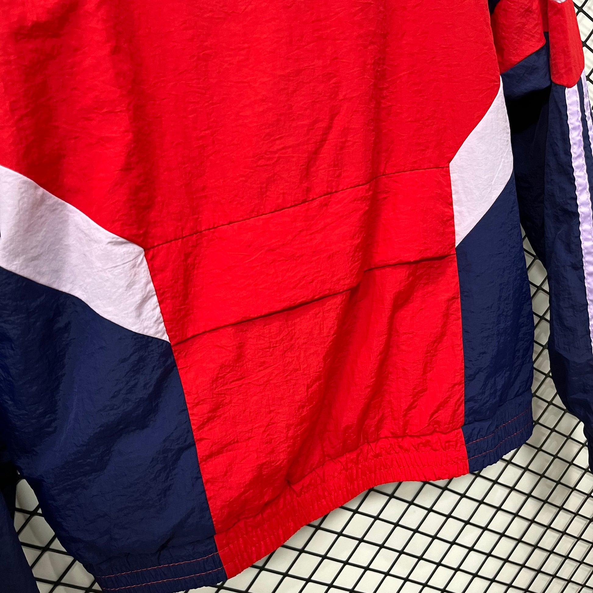 The windbreaker features a bold red design with subtle detailing, reflecting Arsenal’s unmistakable identity. Crafted from lightweight, water-resistant, and windproof fabric, it provides reliable coverage without sacrificing breathability. The adjustable hood, zip pockets, and elastic cuffs ensure a secure, comfortable fit for training, travel, or casual use.