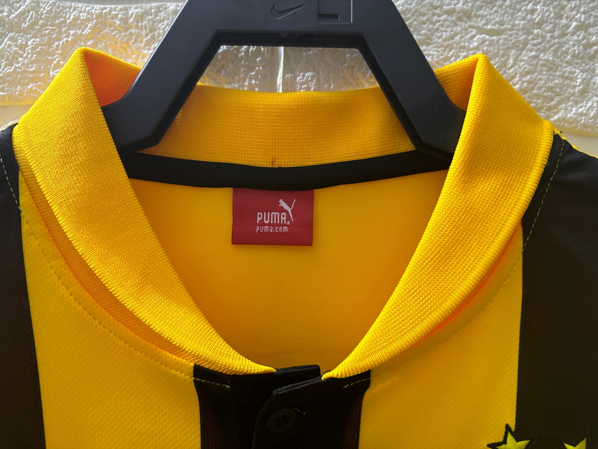 The design features Dortmund’s iconic yellow base with black accents, finished with the Evonik sponsor, Puma logo, and the club crest of the era. Sleek and modern, this vintage Dortmund kit is tied to Klopp’s high-energy football and Lewandowski’s legendary four-goal performance against Real Madrid. A must-have for collectors, supporters, and fans of classic soccer jerseys.