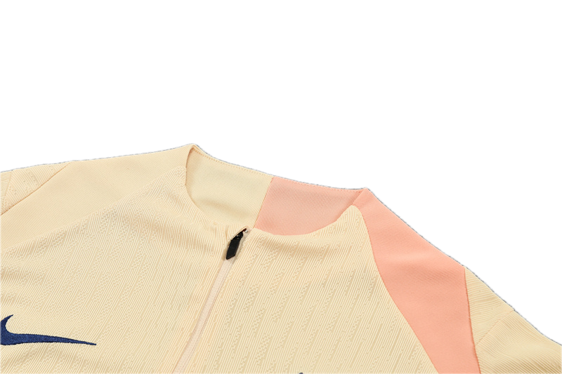 The design features a cream upper paired with deep navy detailing, creating a sleek, minimalist look that reflects Barcelona’s refined identity for the 25/26 season. The lightweight jacket includes a full-zip front, high collar, and zip pockets, while the tapered pants deliver flexibility and a streamlined fit. Both pieces are crafted from breathable, moisture-wicking stretch fabric, keeping you cool, comfortable, and ready for action.