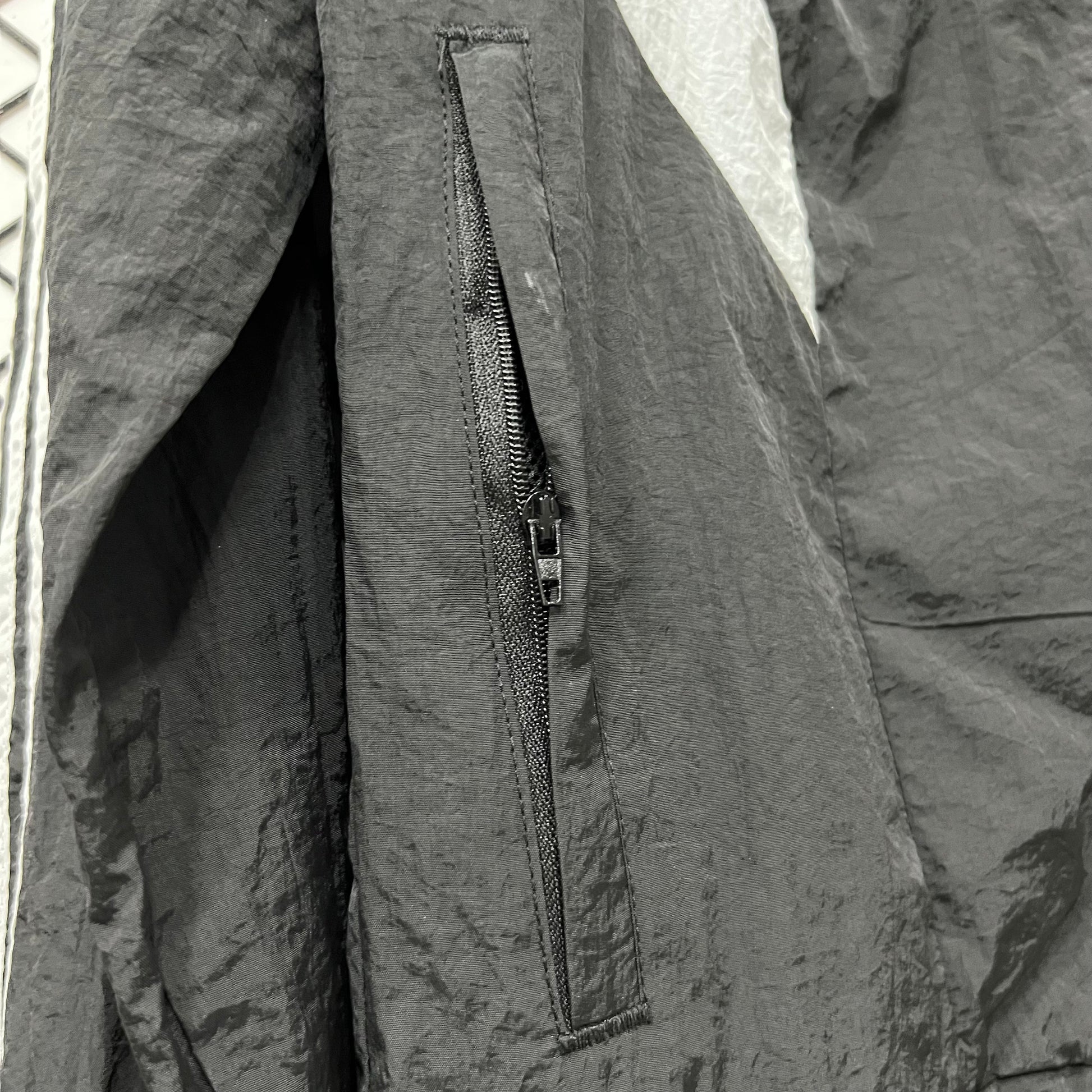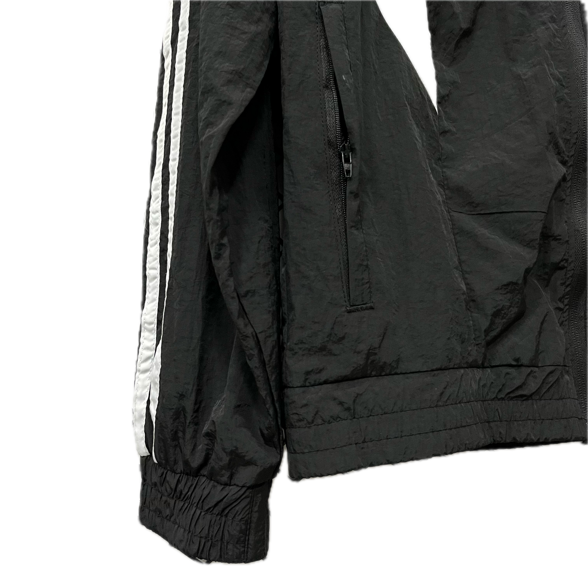 The windbreaker features a matte black design with subtle detailing, giving it a clean and versatile appearance suitable for any occasion. Made from lightweight, water-resistant, and windproof fabric, it provides protection without adding bulk. The adjustable hood, full-zip closure, and elastic cuffs offer a secure fit, while zip pockets keep essentials safe and accessible.