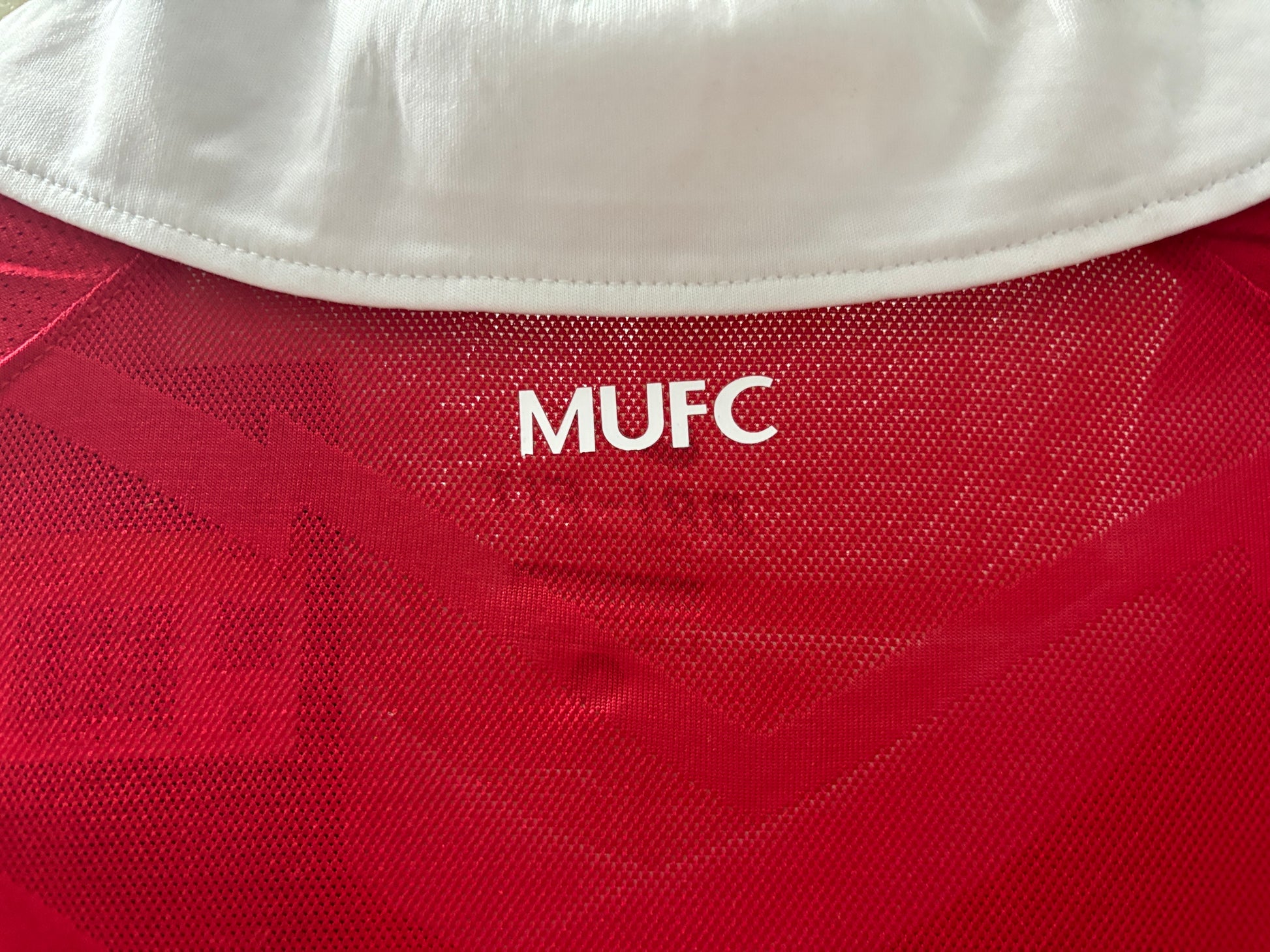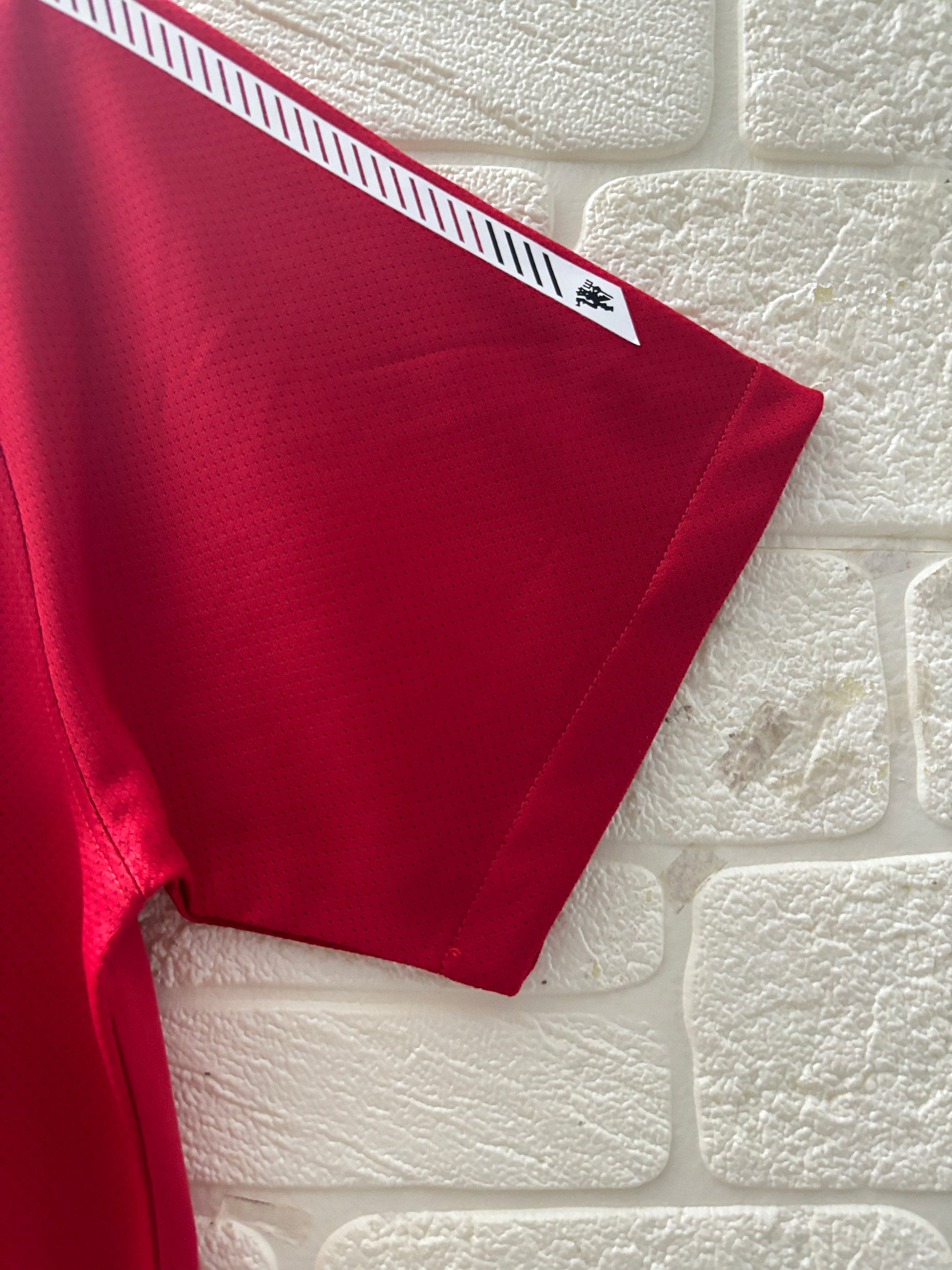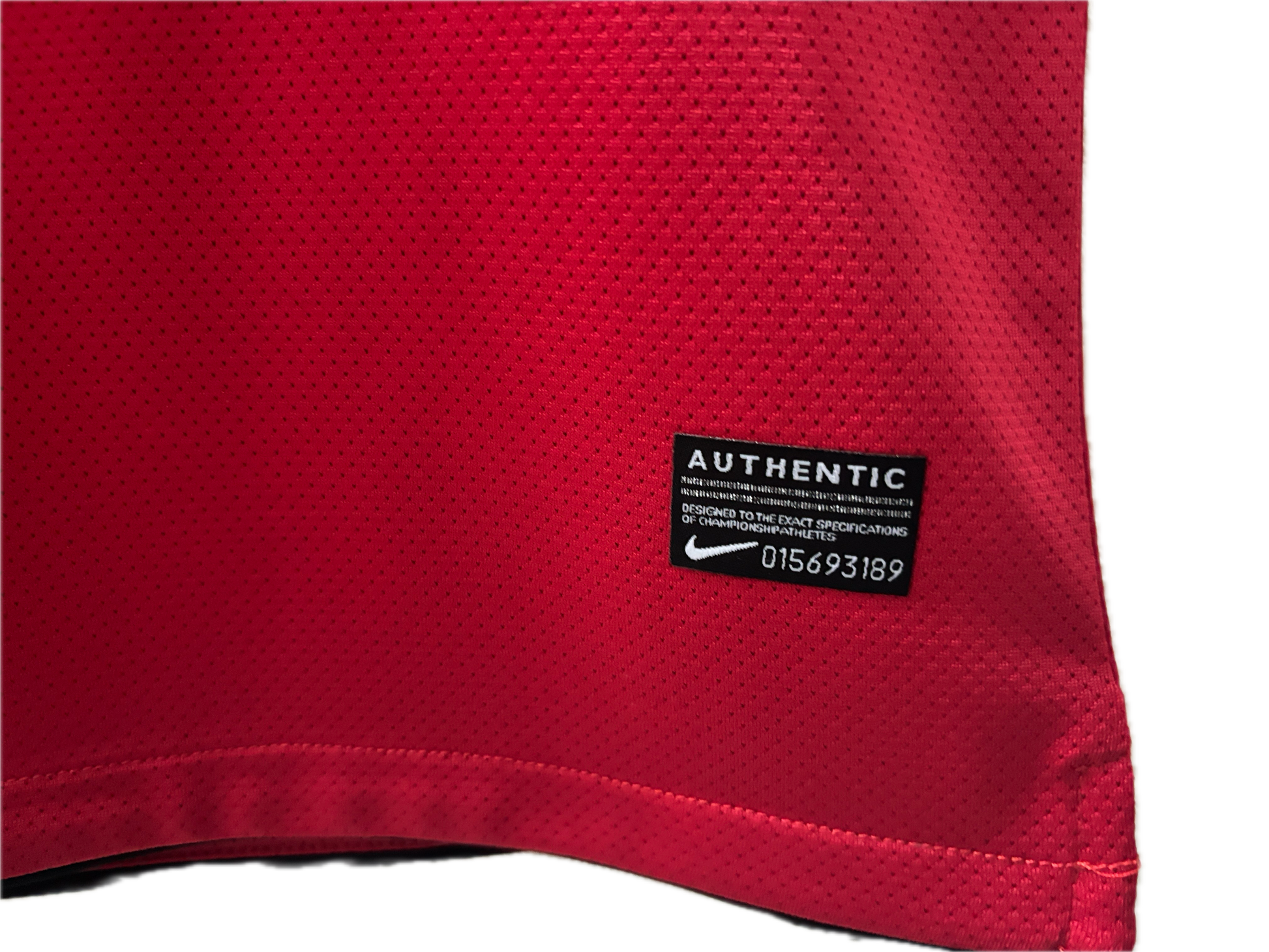 The design features United’s traditional red base with a white collar and trim, creating a clean and modern look. Finished with the Aon sponsor, Nike swoosh, and the Manchester United crest of the era, this vintage Man United kit is remembered for its strong domestic success and iconic European nights. A must-have for collectors, supporters, and fans of classic soccer jerseys.